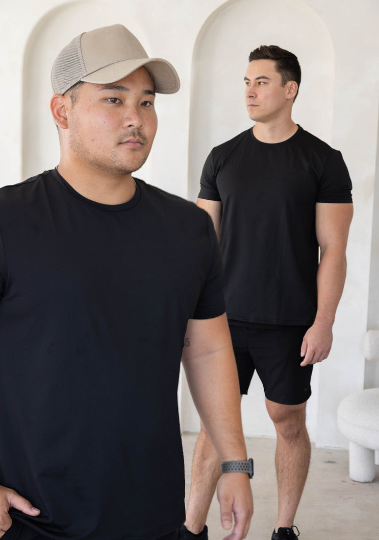 Our first-ever Men's Quick-Dry T-shirt in the color 'IWA BLACK. This ʻIWA black collection is made with a limited edition matte black silicone heat transfer logo for a new sleek look.