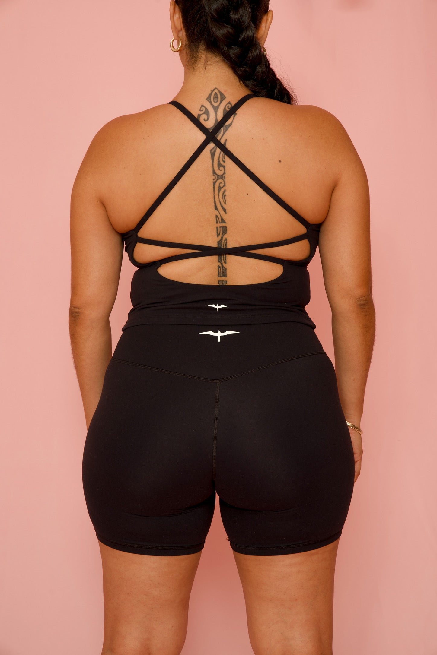 The "Kaikini" (kai-key-knee) Shorts in the color 'IWA. BLACK. Our 'IWA Black color is a classic black.
