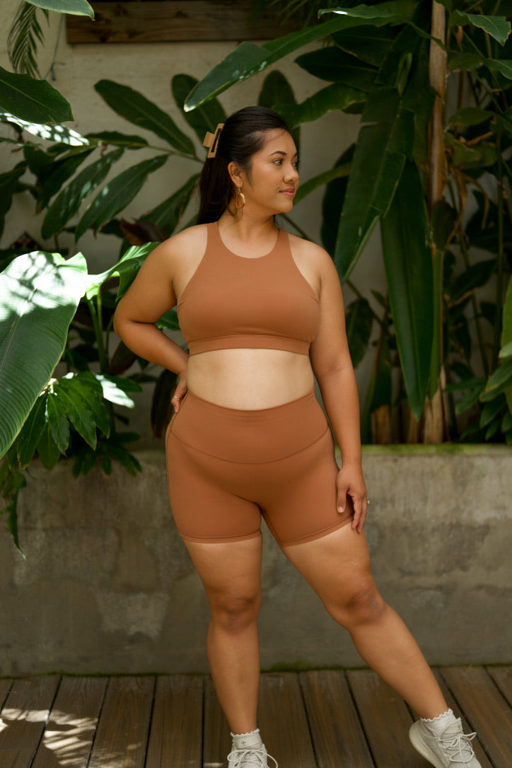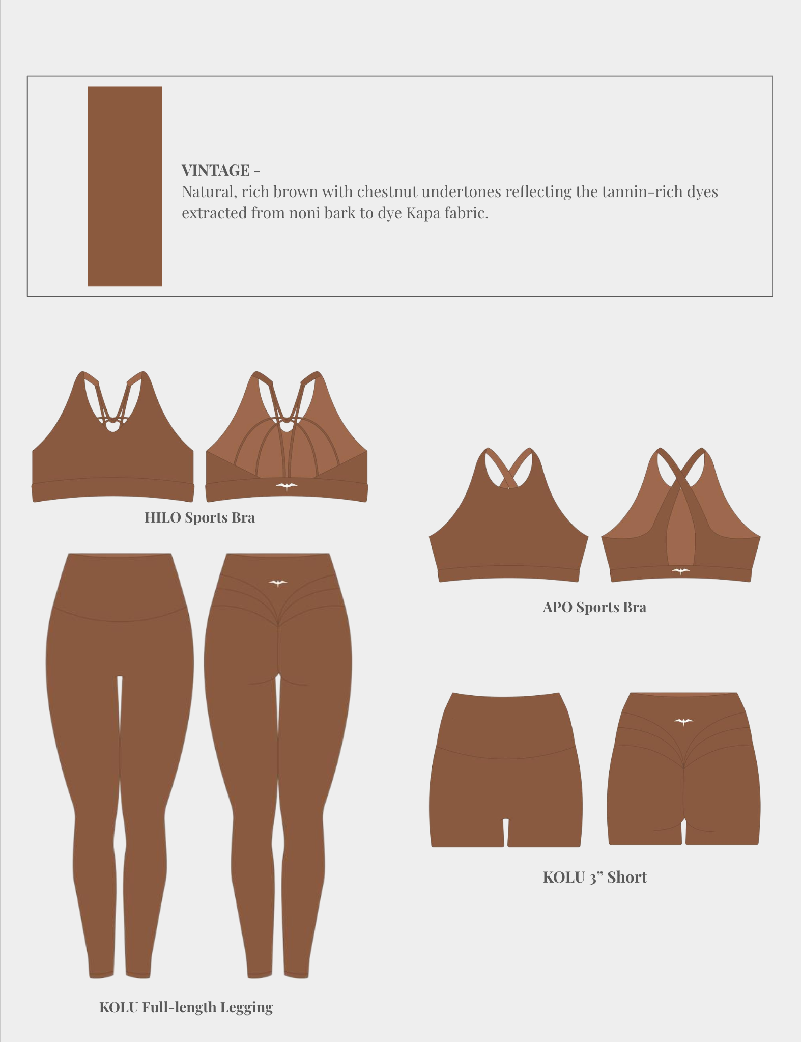 The "Kolu" (ko-loo) 3" Shorts in the color VINTAGE. Our Vintage color is a natural, rich brown reflecting the tannin-rich dyes extracted from noni bark to dye Kapa fabric.