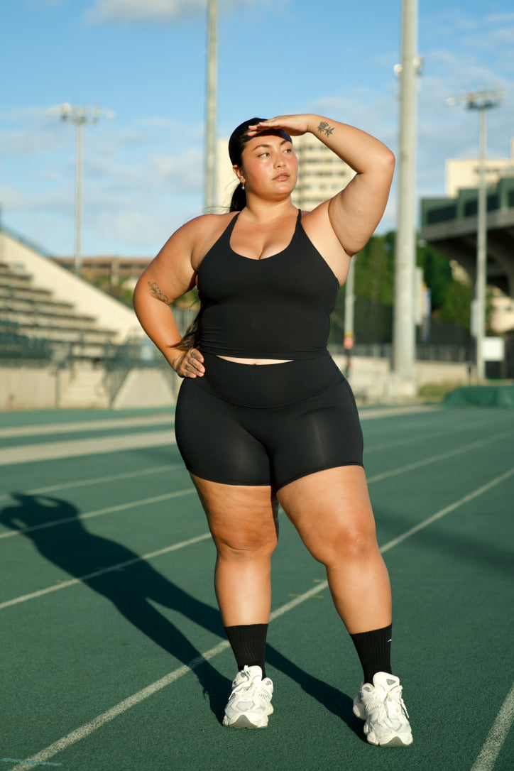 The Loke tank is a cropped tank top designed with thin straps throughout the back, ready to be styled for any occasion.
